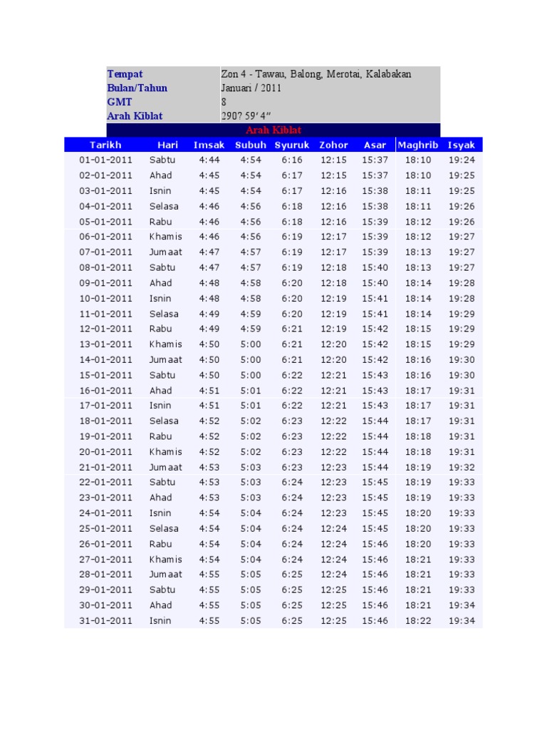 Xls Jadual Waktu Solat 1437 Seluruh Sabah Pusat Islam Ums Academia Edu